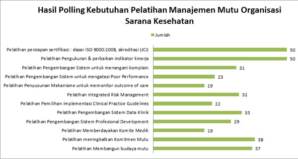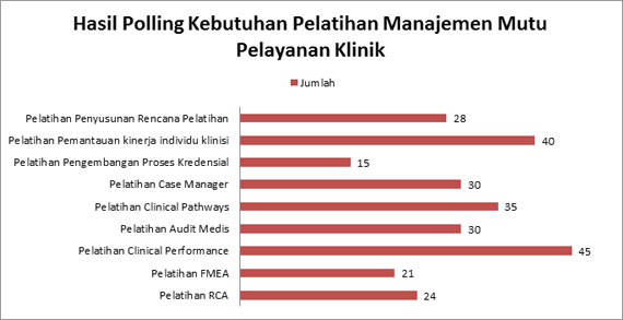 Divisi mutu PKMK (Pusat Kebijakan Manajemen Kesehatan) FK UGM telah mengadakan polling secara online mengenai kebutuhan & keinginan para pelaku kesehatan terkait pelatihan yang tersedia di divisi mutu PKMK FK UGM. Polling dilakukan pada bulan Februari hingga Maret 2013. Sebanyak 125 responden telah mengisi polling dengan ketentuan bisa memilih lebih dari satu pelatihan yang dibutuhkan sesuai kebutuhan responden. Hasil didapatkan : 56 responden berasal dari rumah sakit, 33 responden berasal dari puskesmas, 16 responden dari dinas kesehatan, masing-masing 10 responden dari universitas dan pihak swasta.